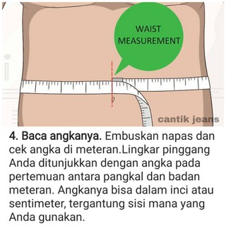 Lepaskan kaus dan bebaskan pinggang dari rok atau celana panjang sehingga bagian tengah perut terekspos. Caranya dengan mengukur lingkar pinggangnya. Dengan menggunakan alat sama, lingkar pinggang diukur tepat di atas pusar, sedangkan lingkar pinggul diukur tepat di bagian pertengahan bokong. Mengukur ukuran sebuah celana adalah tahap awal sebelum proses penjahitan celana, untuk mengambil ukuran sebuah celana. Yang belum paham cara mengukur celana orang gemuk bisa nyimak #tutorjahirmasfian.